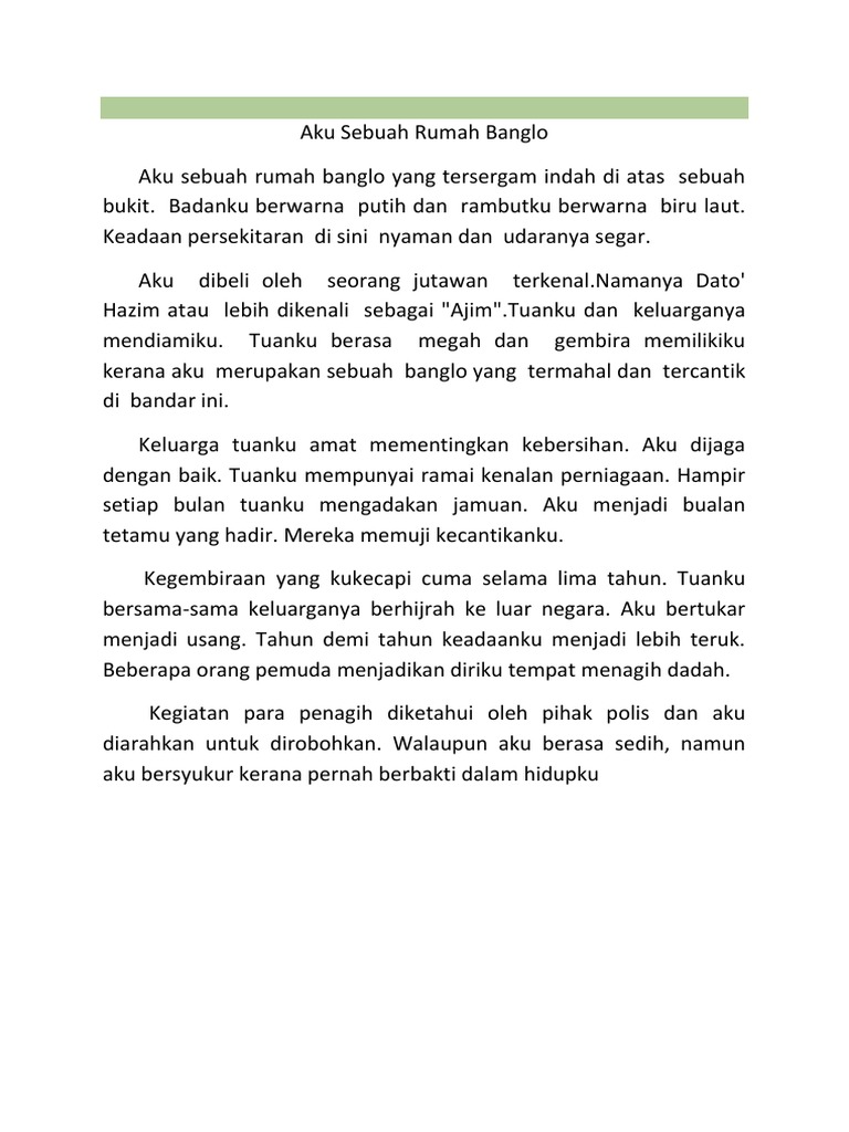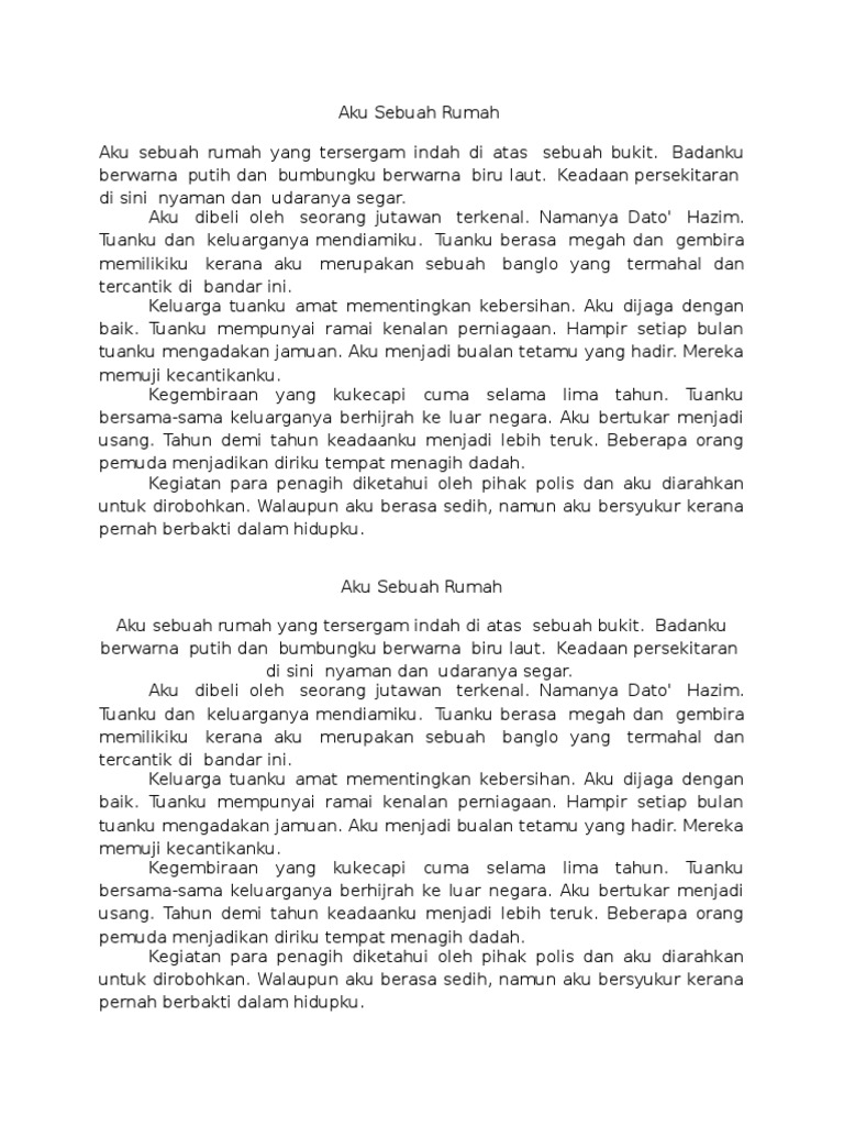 Contoh Karangan Aku Sebuah Rumah